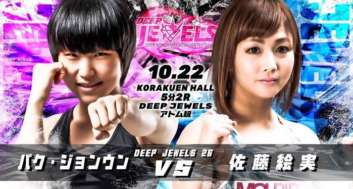 [부자동네타임즈 김인수기자] 박정은과 홍윤하는 22일 일본 도쿄 고쿠라엔 홀에서 열리는 DEEP JEWELS 26에 출전한다박정은은 사토 에미(38), 홍윤하는 수와난 분손(23)과 대결한다.