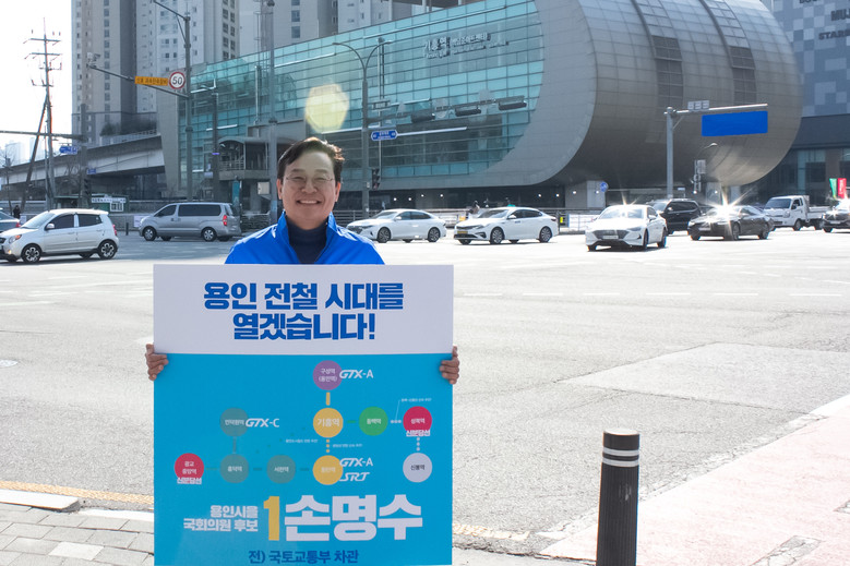 후보 등록을 마친 손 후보는 첫 행보로 기흥역을 찾아 “30여 년간 국토교통부에서 쌓은 경험을 살려 ‘용인 전철시대’를 열겠다”며 △분당선 연장(기흥~동탄) 신속 추진 △용인 도시철도(기흥~광교) 연장 추진 △동백~신봉선 신속 추진 △인덕원~동탄선 조속 완공 등을 공약했다.