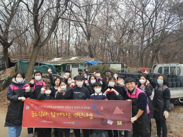 학교 밖 청소년 지원사업은 만 9~24세로 유예, 제적, 자퇴, 퇴학, 미진학 등의 이유로 현재 학교에 다니지 않는 청소년이라면 누구든 프로그램에 참여할 수 있다. 상담, 교육, 진로, 자기 계발, 동아리, 체육, 건강, 자립 복지 등의 다양한 서비스가 제공되고 있으며, 모든 프로그램은 전액 무료로 제공된다. 신청 및 문의는 고양시청소년지원센터 꿈드림으로 전화 (031-995-4276) 하면 된다재단법인 고양시청소년재단(대표이사 박윤희) 고양시청소년지원센터 꿈드림(센터장 황상하)은 지난 12월 10일(토), 화정동에서 학교 밖 청소년, 부모, 지도자 25여 명이 참여한 가운데 연탄 봉사를 진행하여 이웃 사랑을 실천했다.