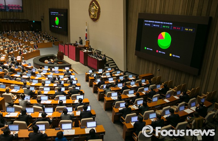 (서울=포커스뉴스) 3일 오전 서울 여의도 국회에서 열린 337회 국회(정기회) 14차 본회의에서 2016년도 예산안에 대한 수정안이 재석 275인 중 찬성 197인, 반대 49인, 기권 29인으로 통과되고 있다.