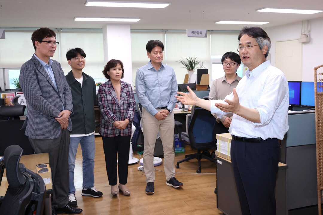 또한 이 시장은 시청사 이전 사업이 행안부 타당성 조사에서 통과되었다는 반가운 소식을 전하며 “오늘 이렇게 직접 본청과 떨어져서 산발적으로 위치한 외청 부서들을 방문해보니 그동안 직원과 시민들이 느꼈던 불편을 느낄 수 있었다”며 “업무 효율성을 높이고 시민 편의를 도모하기 위해서라도 조속히 시청사를 이전할 필요성이 있다”고 전했다.
