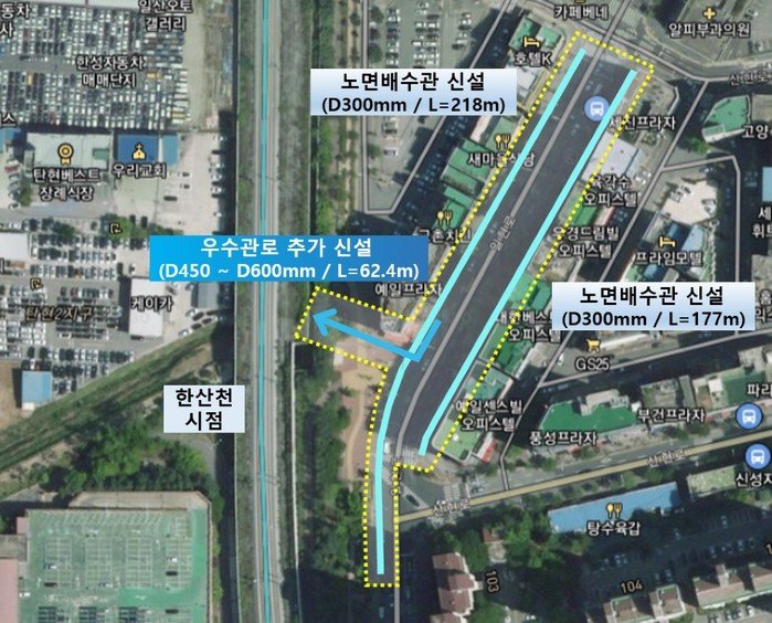 해당 지역의 침수 피해를 막기 위해 고양시 상하수도사업소 하수행정과는 공사를 통해 도로 양측에 약 400m 규모의 노면 배수관을 설치하고, 63m 규모의 우수관을 신설했다.