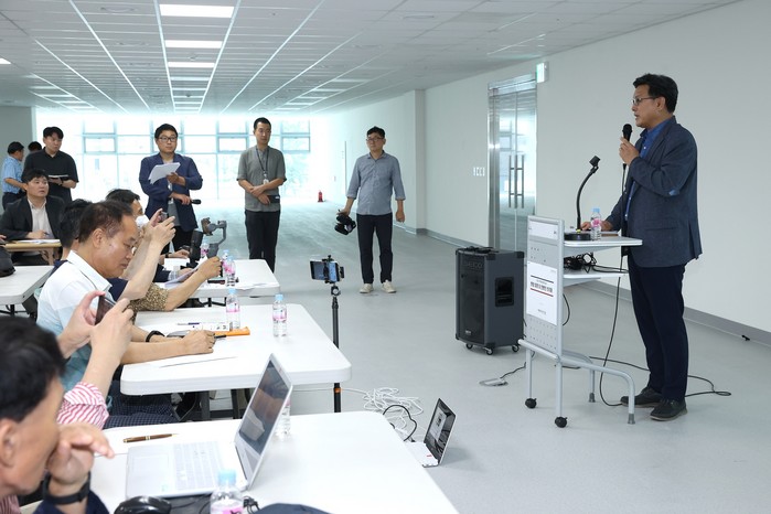 브리핑은 신청사 이전 진행사항 및 향후계획 발표, 질의응답, 백석 업무빌딩을 둘러보는 순서로 진행됐다.