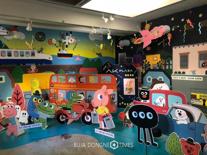 수원점 AK갤러리에서는 2월10일까지 ‘헬로! 굴리굴리’ 전시전을 진행한다. 갤러리 전시관에는 굴리굴리 작가의 돼지 캐릭터 ‘데이지’와 그의 친구들인 귀여운 동물 캐릭터를 연출했다.