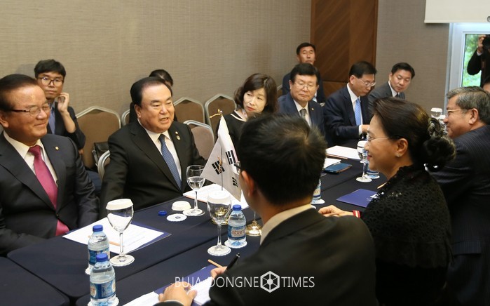 또한 문 의장은 “남북관계와 한반도 평화에 대해 베트남이 일관되게 지지해준 것에 감사하다”면서 “11월 남북국회회담 역시 많은 지원을 부탁한다”고 한반도 문제에 대한 관심과 지지를 당부했다.