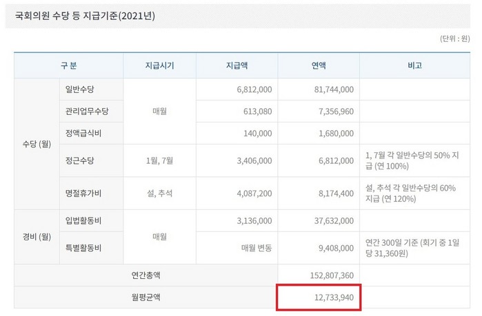01. 국회의원 세비 1억3,796만원(2020년)