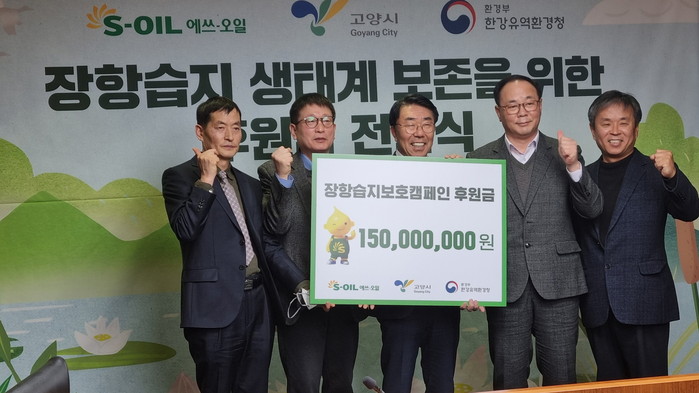 고양특례시(시장 이동환)는 서울 마포구 에쓰-오일 본사에서 고양시, 한강유역환경청청 등이 참여한 가운데 장항습지 보전 활동을 지원하는 기탁금 전달식을 가졌다고 전했다.