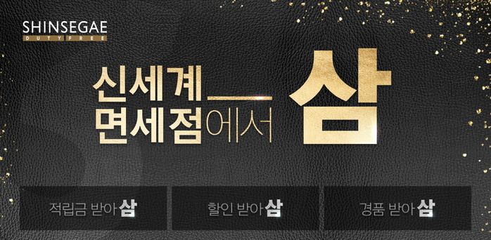 먼저 신세계면세점은적립금 최대 213,000원까지 증정하는“적립금 받아 삼” 이벤트를 실시한다.11월 13일(월)부터 11월19(일)까지 적립금 사전 신청 고객대상으로 증정한다.신세계인터넷 면세점 이벤트에 참여해 간단한 퀴즈를 풀거나,사전예약신청, 앱쇼핑수신동의 참여한 고객에 한해 적립금을 제공한다.