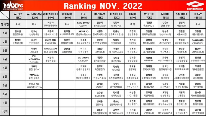 MAX FC 2022년 11월 종합 랭킹 발표.