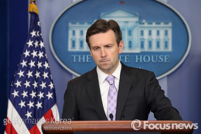△ 조시 어니스트 미 백악관 대변인이 8일(현지시간) 언론 브리핑에서 '무슬림 입국 금지를 추진해야 한다'는 도널드 트럼프의 발언을 두고 "그가 미국 대통령이 될 자격이 없다는 것을 보여준다"고 강력히 비판하고 있다. ⓒ게티이미지/멀티비츠 photo@focus.kr