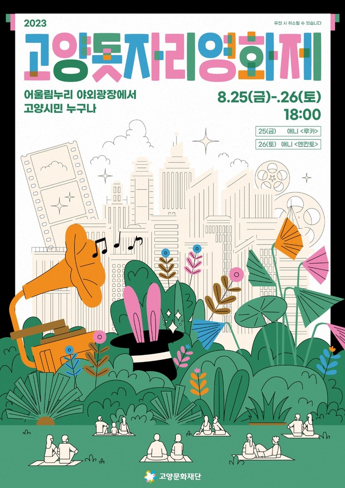 [부자동네타임즈 김인수기자] 고양문화재단 고양영상미디어센터가 8월 25일(금) ~ 26(토) 양일간 고양어울림누리 광장에서 가족, 친구와 함께 즐기는 고양돗자리영화제를 진행한다.