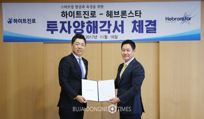 하이트진로는 벤처캐피탈(VC) 모집 운영과 스타트업 육성사업을 하는 헤브론스타벤처스와 16일 투자 양해각서(MOU)를 체결했다. 본 계약은 12월 중순에 예정되어 있다.