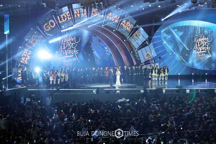 14일 오후 경기도 일산 킨텍스에서 열린 ‘제 31회 골든디스크‘ 음반 부문 시상식에서 전 출연자가 모여 오프닝을 연출하고 있다. ‘제31회 골든디스크 어워즈’는 한 해 동안 사랑받은 대한민국 대중가요를 선정해 결산하는 무대로 14일 까지 킨텍스에서 진행되며 JTBC, JTBC2를 통해 생중계된다. 2017.01.15. (사진=일간스포츠 제공)