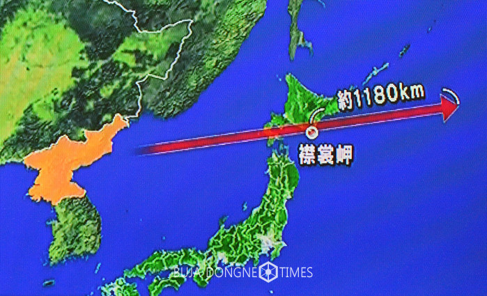 [부자동네타임즈 전경란 기자]북한이 15일 비행거리 3700여㎞인 탄도미사일을 발사한 가운데 북한은 이번 발사를 통해 괌 포위사격 능력을 과시한 것으로 보인다. 북한은 17일 만에 일본상공을 지나는 미사일을 발사하면서 미사일의 사거리를 1000㎞를 늘렸다.