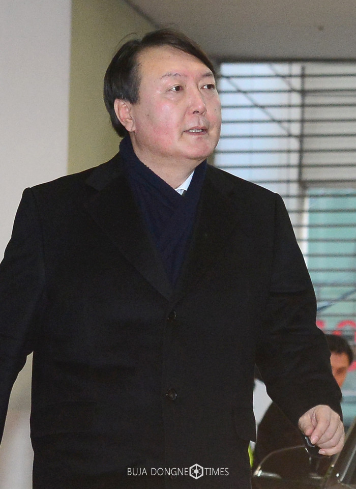 윤석열 특검 수사팀장이 16일 오전 서울 강남구 '박근혜 정부의 최순실 등 민간인에 의한 국정농단 의혹 사건 규명을 위한' 특별검사 사무실로 출근하고 있다. 2017.02.16.