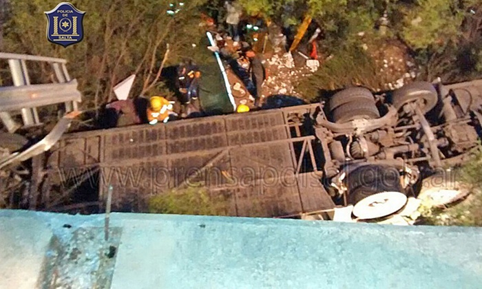 (서울=포커스뉴스) 아르헨티나 북서부 지역에서 경찰 버스가 다리 밑으로 추락하는 사고가 발생했다. 이 사고로 버스에 타고 있던 경찰관 중 43명이 숨졌다.
