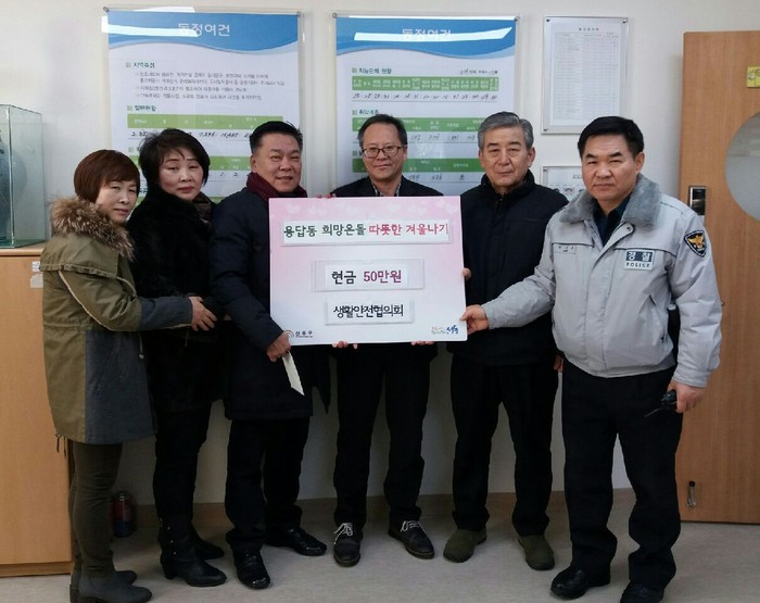 3년째 행사를 이어온 생활안전협의회는 2015년∼2016년 쌀 기부에 이어 올해는 수익금 50만원을 따뜻한 겨울나기 성금으로 기탁하고 또한 도움이 필요한 이웃들에게 생필품을 후원하며 팥죽 한 그릇으로 나눔을 실천하는 선행을 이어가고 있다.