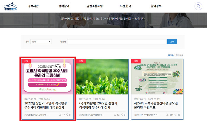 6월 26일까지 광화문1번가에서 온라인 국민심사 진행.