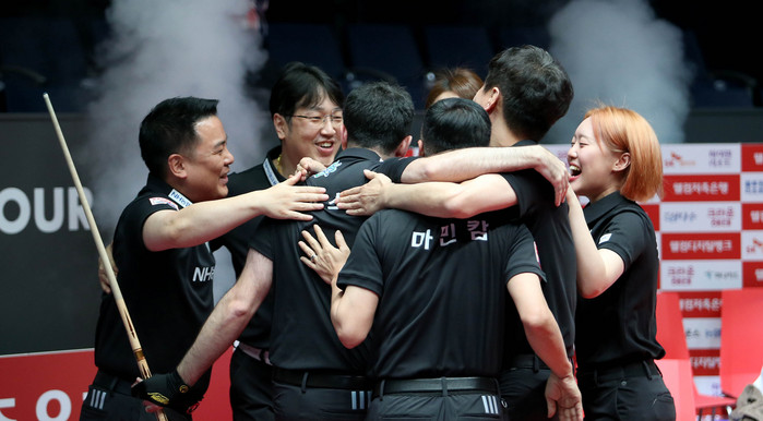 [사진설명] NH농협카드 승리를 자축하고 있다.