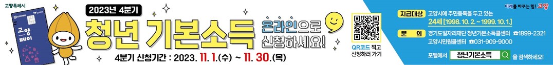 고양시, 2023년 4분기 청년기본소득 신청·접수 시작.