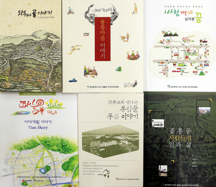 이에 지난 1년간 주민들의 땀과 노력으로 '중흥동 사람들의 일과 삶', '용봉마을 이야기'. '산동교와 만나는 동림골 푸른 이야기', '와우골 이야기' 등 4개 마을 스토리북과 '바람개비 삼각동 꿈', '따순마을 양산동' 등 2개 미래계획이 주민들의소중한 자산으로 결실을 맺은 것이다.