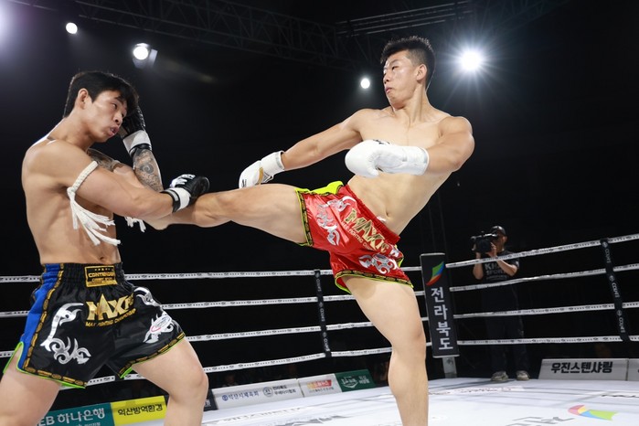 [부자동네타임즈 김인수기자] MAXFC는 지난 15일 전북 익산실내체육관 특설링에서 ‘MAXFC 24 IN 익산’과 퍼스트리그 26 대회를 성황리에 끝마쳤다. 이번 MAXFC 24 대회는 한국 VS 대만,태국,일본 국제전 3경기와 새로운 챔피언을 가리는 타이틀전 2경기를 포함한 총 6경기, 12명의 국내외 최정상급 선수들이 명승부를 펼치면서 성황리에 치러졌다.