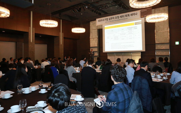 [부자동네타임즈 이현재 기자]KB국민은행은 지난 23일과 24일 양일간 서울 더 플라자 호텔과 부산 센텀그랜드애플에서서울, 수도권 및 부산지역 우수 중소기업 실무자 150여명을 대상으로‘KB 우수기업 실무자 초청 세무ㆍ회계 세미나’를 개최했다고 밝혔다.
