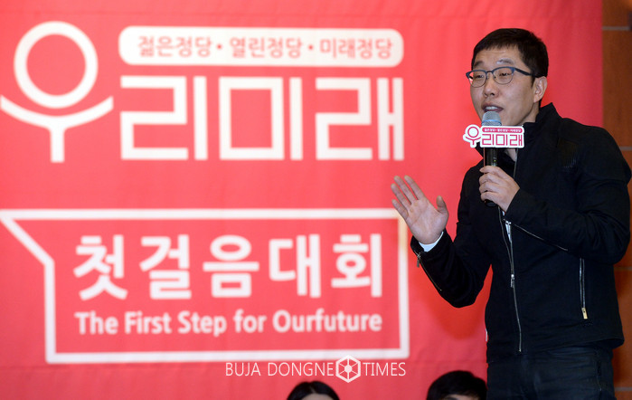 방송인 김제동이 15일 오후 서울 용산구 백범김구기념관에서 열린 '우리미래 창당발기인대회'에 참석해 축사를 하고 있다. 2017.01.15.