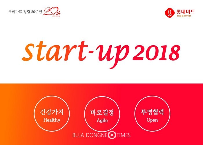 이를 위해 롯데마트는2018년 한 해 동안 건강가치(Healthy), 바로결정(Agile), 투명협력(Open)을 바탕으로스타트업의혁신성을 벤치마킹해 이들 기업처럼 체질을 바꾸기 위해 노력한다.