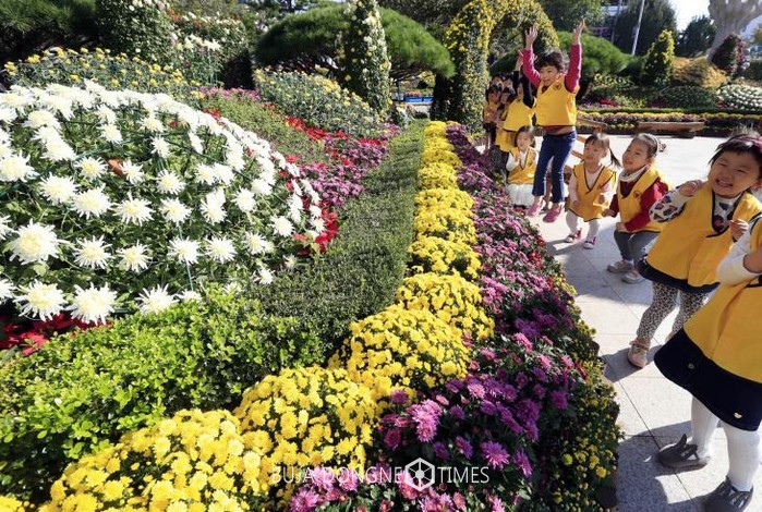 "가을의 전령인 국화꽃의 향연이 펼쳐지는 북구청 광장에서 완연한 가을의 정취를 느끼며 가족과 함께 즐거운 시간 보내세요."