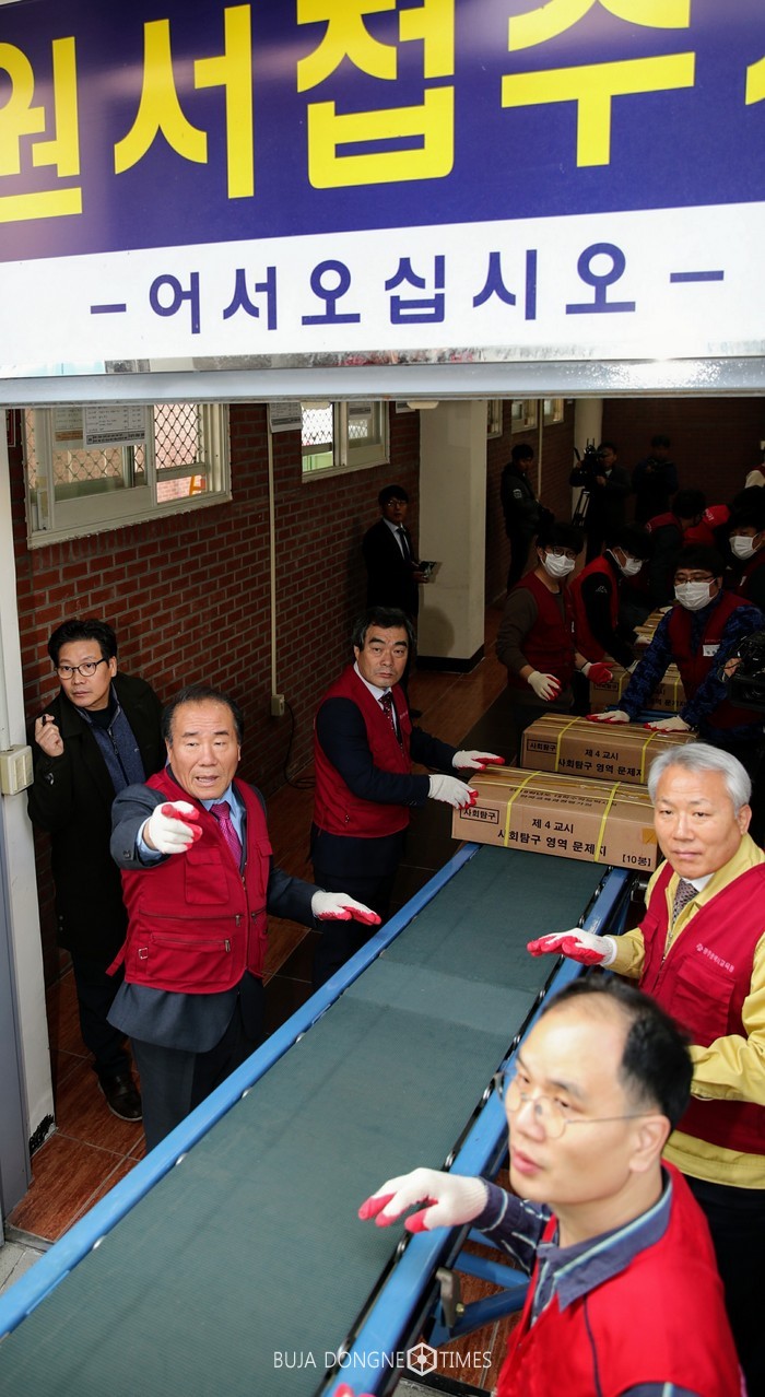 2018학년도 수학능력시험 문답지가 광주시교육청 원서접수처에 입고되었고, 그 문답지를 직접 장휘국 교육감이 직접 분류 작업을 진행했다.