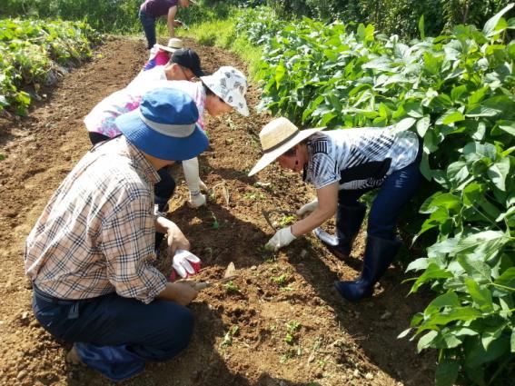 | △‘기억이 자라나는 농장’에서 텃밭을 가꾸고 있는 치매환자와 가족들 |