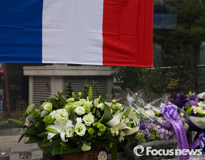 | △ 주한 프랑스 대사관 앞에 놓여진 조화 |