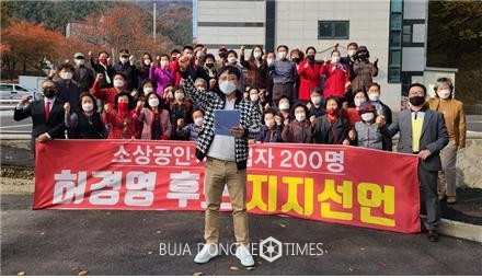 김관석(도봉구, 레스토랑 경영) 모임 대표와 정대석(시흥시, 제조업) 및 박희열(강동구, 용달업) 등, 40여 명은 200여 명의 중소상공인, 자영업자 들을 대표하여 지지선언을 통해 “여⋅야 기존 정치권은 국민의 어려움은 아랑곳하지 않고 원칙이 무너지고 정쟁을 일삼고 있어, 정권과 정치교체로 국민이 행복한 대한민국을 이뤄낼 후보는 허경영”이라며 지지 이유를 밝혔다.