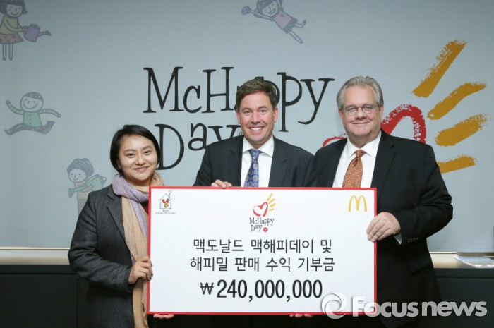 (서울=포커스뉴스) 맥도날드가 재단법인 한국로날드맥도날드하우스(RMHC Korea)에 2억4000만원의 기부금을 전달했다.
