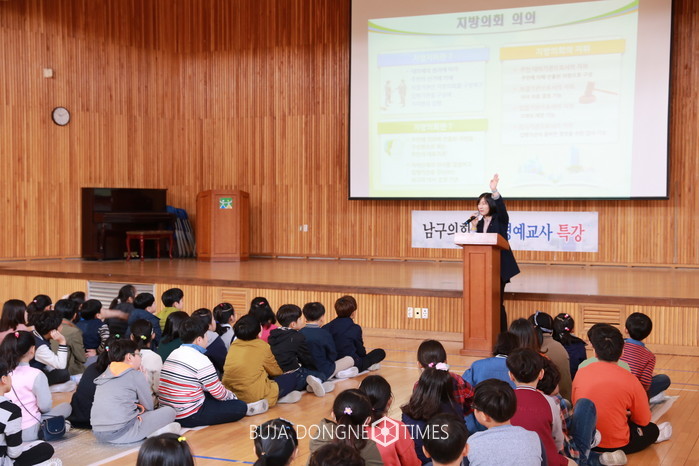 수업은 의회 민주주의 의미에 대한 강의, 질문·답변, 남구의회에 바라는 점 말하기 등으로 꾸며졌으며, 학생들에게 지방의회 의원의 선출 과정과 의정활동 내용, 민주주의의 다양한 참여형태 등을 알려주고 투표의 중요성도 강조했다.