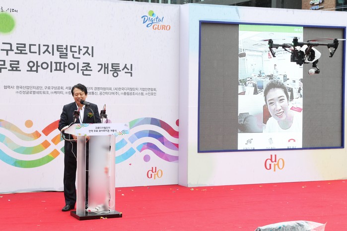 △ 구로디지털단지 무료 와이파이존 개통식에서 축사하는 이성구청장.