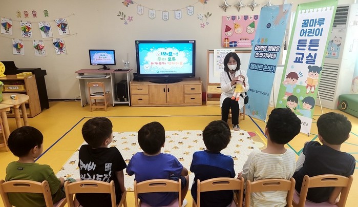 어린이집·유치원 대상 치아관리교육사업 ‘내 치아는 소중해’는 1년에 걸쳐 총 3회차로 진행된다. 1차 교육은 3월~5월, 2차 교육은 6월~9월 동안 진행된다. 일산서구보건소는 7월 말을 기준으로 40개의 기관에서 교육을 진행했다.