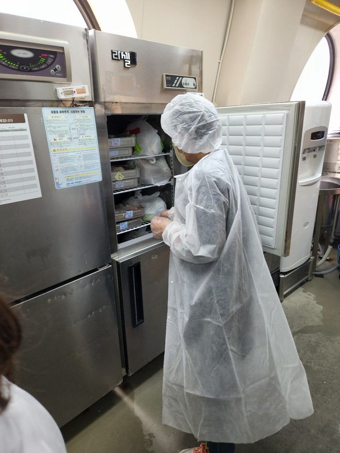 [사진설명] 소비자위생감시원이 식재료 보관 상태, 유통기한 등을 확인하고 있다.
