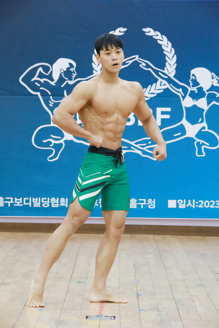 [사진설명] 제2회 인천광역시 미추홀구청장배 보디빌딩&피트니스 선발대회 무대에서 자신에 매력을 표출하고 있는 부건호 선수.