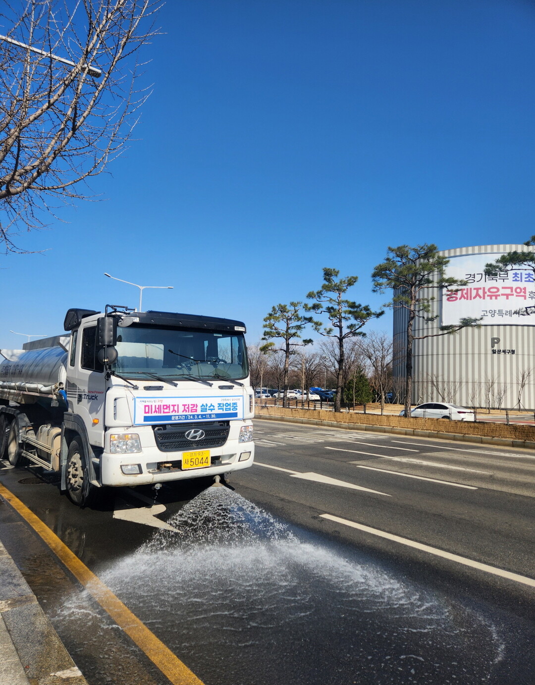 또한, 도로 재비산먼지 저감을 위해 고압살수차 1대를 운영하여 관내 8개 노선 총 54.6km 구간을 집중 살수할 예정이다.