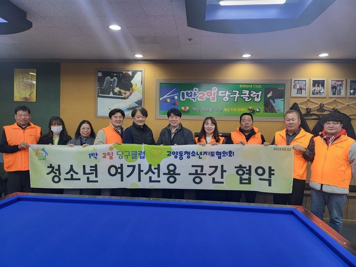 [부자동네타임즈 김인수기자] 고양특례시 고양동 청소년지도위원회(위원장 박정용)는 지난 2일 고양동 청소년들의 여가 활동을 지원하고자 1박2일 당구클럽과 업무협약을 맺었다.