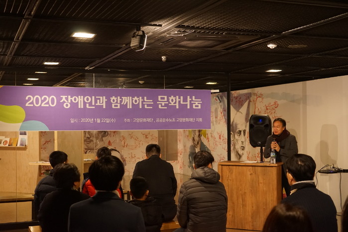 [부자동네타임즈 김인수기자] (재)고양문화재단(대표이사 정재왈, 이하 재단)은 22일 고양아람누리에서 노사가 뜻을 모아 훈훈한 이웃 사랑을 실천하는 <2020 장애인과 함께하는 문화나눔> 행사를 개최했다.
