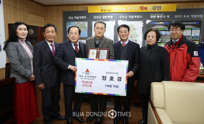 [부자동네타임즈 손권일 기자]사회복지공동모금회를 통해 일시에 1억원 이상을 기부하거나 5년 이내 약정 납부한 개인 기부자들의 모임인 ‘아너 소사이어티’. 지난 3월에 이어 강진군에서 두 번째로 아너 소사이어티가 탄생했다. 그 주인공은 강진읍에서 정호경치과를 운영하는 정호경 원장.지난 3월 작천 토동출신으로 서울에서 ㈜한성유엘산업을 운영하고 있는 이경수 향우가 군에서는 처음으로 가입한데 이어 정 원장이 두번째로 이름을 올렸다. 일년 사이 2명의 아너를 배출하는 쾌거를 이뤘다.