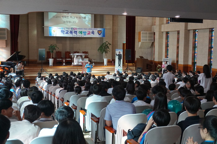 특히, 이날 콘서트는 단순한 학교폭력예방교육에서 벗어나 학생들의 흥미를 유발시키는 퓨전클래식 콘서트로 곡 중간 마다 연주자의 해설을 곁들여져 동창적이고 감동이 있는 음악회 형식 차별화된 교육으로 진행됐다.