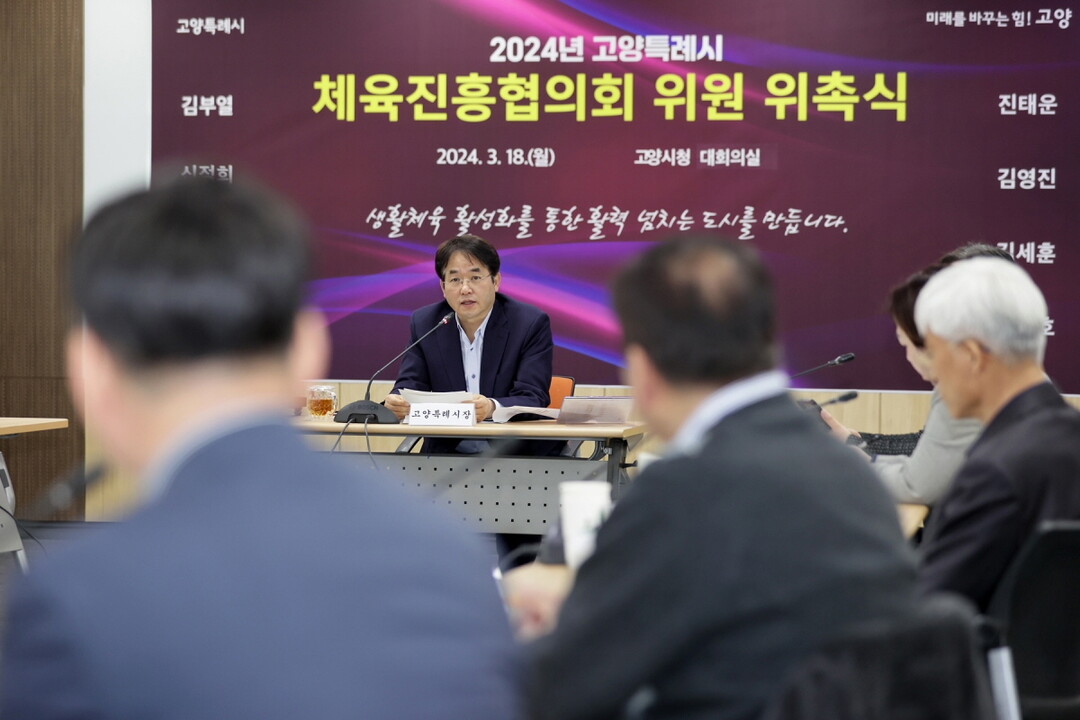 시는 18일 오전 시청 본관 2층 대회의실에서 이동환 고양특례시장의 주재로 2024년 체육진흥 협의회 위원 위촉식 및 정기 회의를 개최했다고 밝혔다.