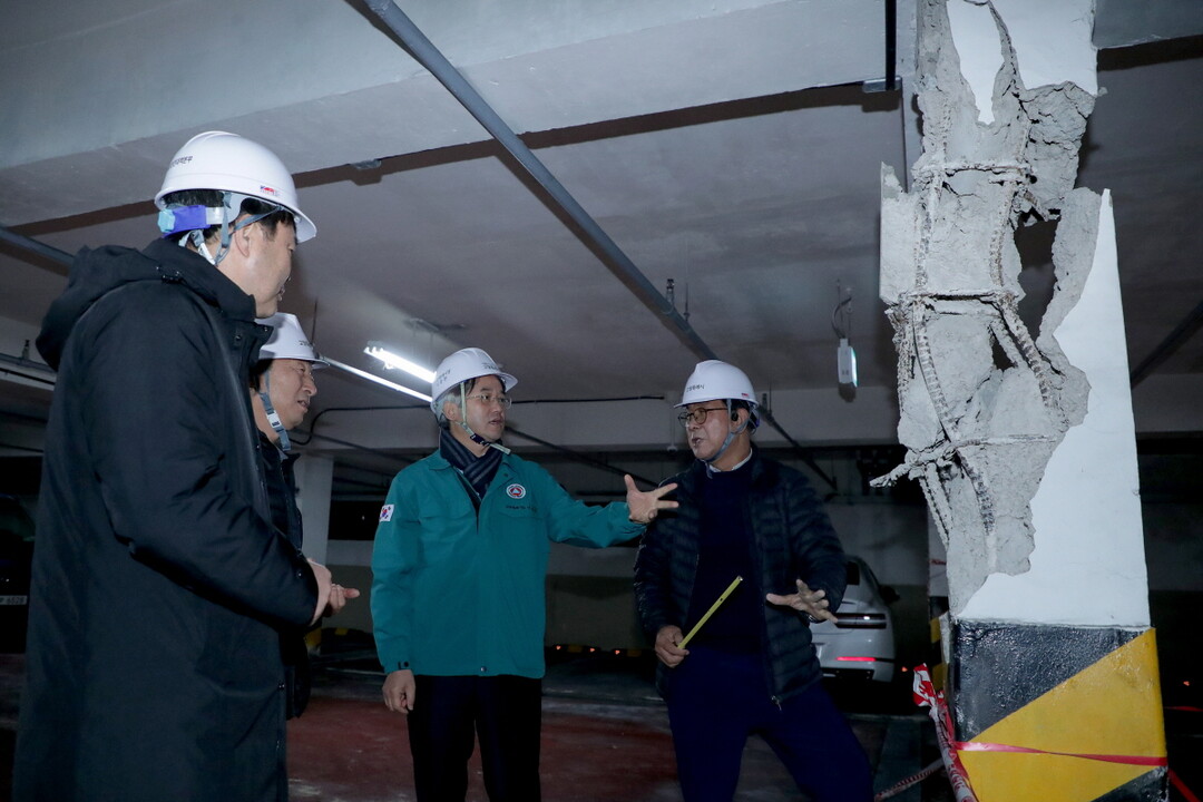 [부자동네타임즈 = 김인수 기자] 이동환 고양특례시장은 17일 아침 일산서구 주엽동 아파트 지하주차장 기둥파열 현장을 점검하고 신속한 안전조치를 지시했다.