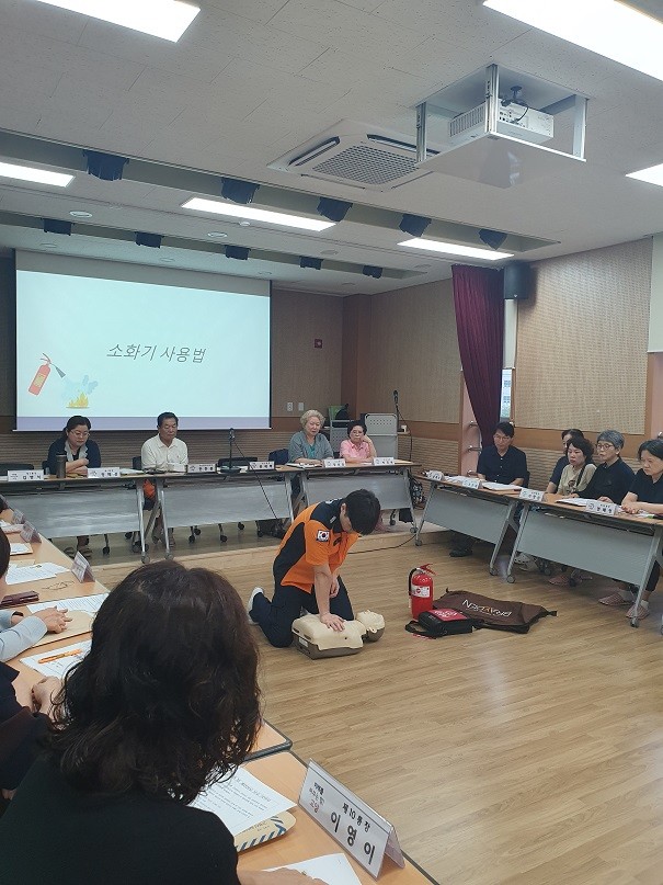 이번 훈련은 일산소방서 협조로 통장 및 직원 40여 명이 참여한 가운데 소화기 사용법, 심폐소생술 등 생활밀착형 교육 위주로 진행되었다.