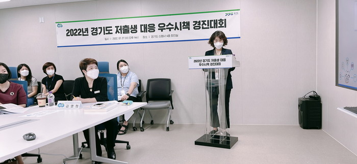 [사진설명] 2022년 경기도 시・군 저출생 대응 우수시책 경진대회에서 고양시가 발표를 하고 있다.