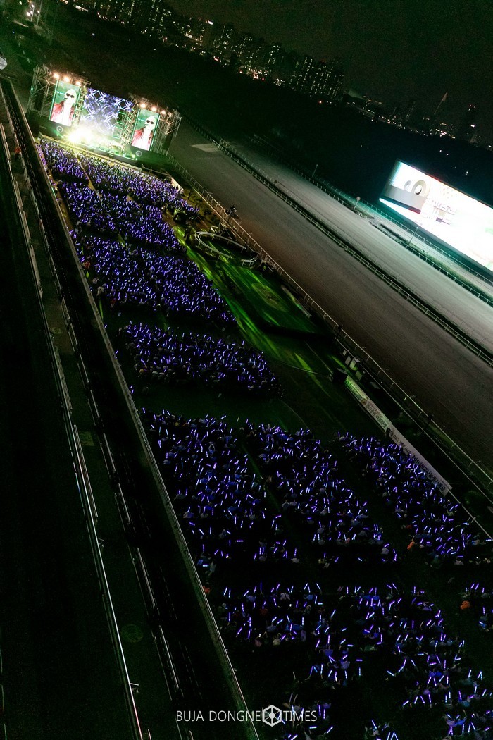 [부자동네타임즈 이언금 기자]한국마사회(회장 김낙순) 서울 경마공원에서 지난 28일(토) 저녁 8시에 개최한 ‘경마공원 콘써-트’가 5천여 명의 관객을 운집하며 성황리에 종료되었다. 경주로 대형 스크린에 경마 경주가 아닌 공연이 중계되고, 경마 관람대가 공연 객석으로 변한 이색적인 광경이 펼쳐졌다.